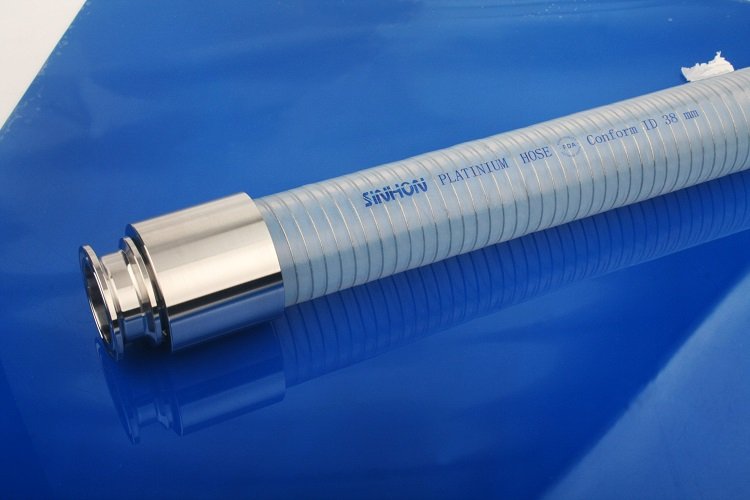 该软管内衬不锈钢丝加强,内外壁均完全平滑,使得物料在钢丝软管内流动顺畅,同时也使得食品级软管的清洗和消毒更加方便。